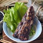 加入一整條細緻的紅豆泥(植物油攪拌),再鋪滿黑糯米(紫米)包裹綑綁後,經過水煮 4~5 小時後,黑糯米與內餡巧妙的搭配,甜味粽也呈現出無與倫比的好滋味,食材中的精華完全釋放。保存期限冷凍6個月,加熱前無須退冰,可電鍋加熱或是煮水加熱,不建議使用微波爐加熱!