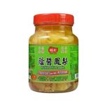 瓶裝,採用台灣本土產鳳梨及嚴選非基因改造黃豆蒲醃製而成[古法正蔭]
